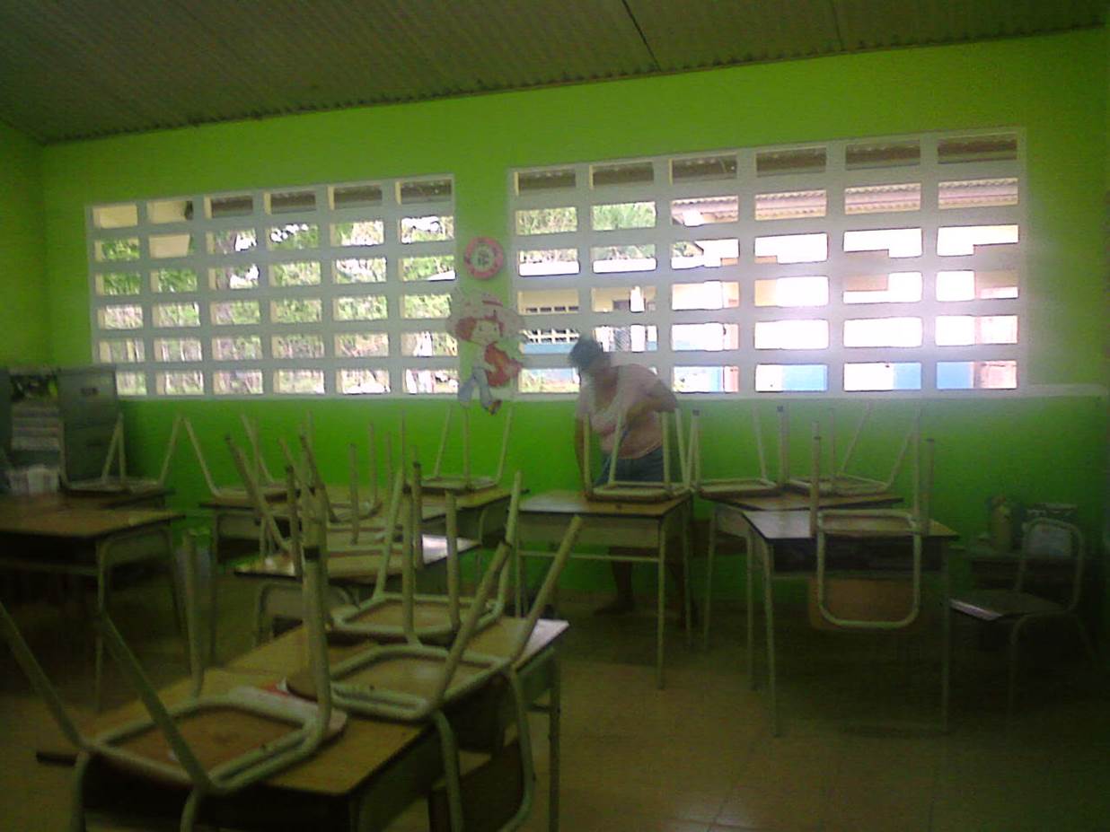 The rest room facilities, situated in back of the school, could use some repair. The sinks are for hand-washing, as the water at Nicanor is not potable.