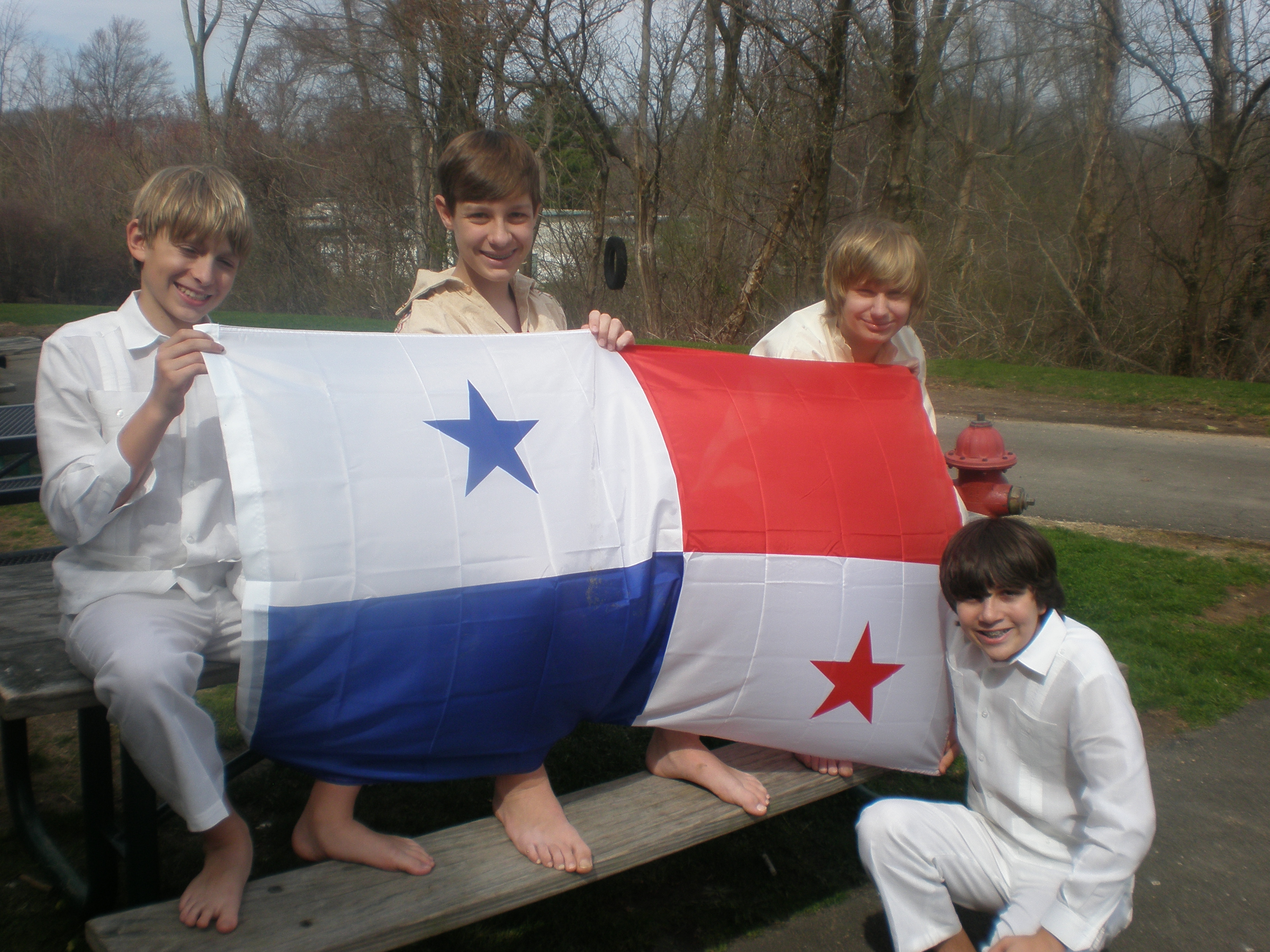 These four Middlesex Middle School students, shown here with a Panamanian flag, served as masters of ceremony for Variety Show 5 , presented from 7:00 to 9:00 on May 5th, 2011. Three of the youngsters hosted several of these fundraisers, and bade farewell to Middlesex with the fifth variety show, as they were promoted to high school on June 17th.