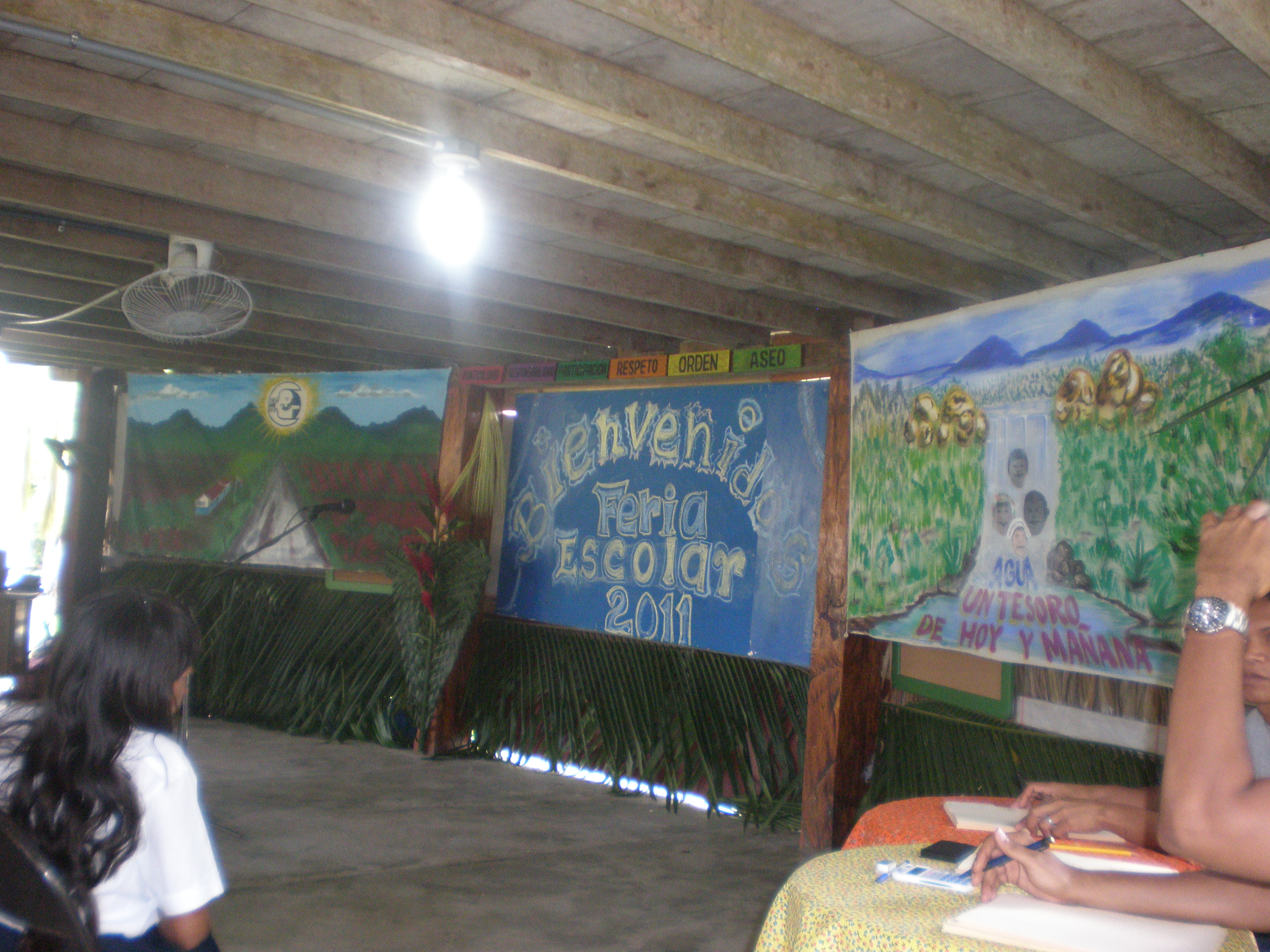Bienvenidos a la Feria Escolar. Bien recuerdo que en 2008 no llovió durante los dos día de la feria….pero en 2011, sí tuvimos bastante lluvia – y los insectos salieron a atacarnos. De todas maneras, el talento de los niños sigue siendo impresionante, y pasamos un día muy bonito con los amigos de la Fundación.